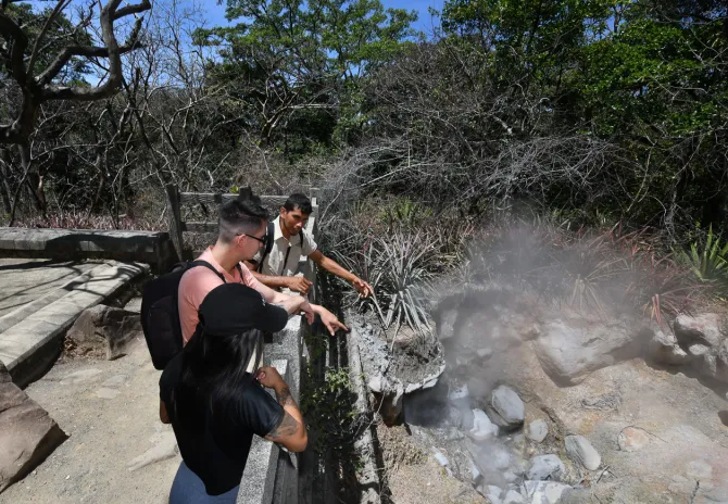 The 2 miles (3.2 km) Las Pailas trail cuts through tropical dry and wet forests with stops at various secondary volcanic activities. Secondary volcanoes consist of: fumaroles which are common features on active volcanos that idicate the presence of heat. Surrunding the fumaroles you will discover a fumarolic lagoon, a quixotic pond of volcanic minerals.